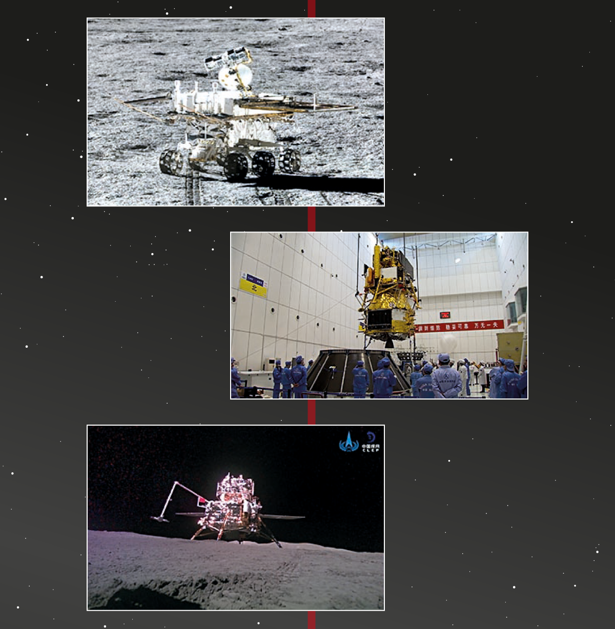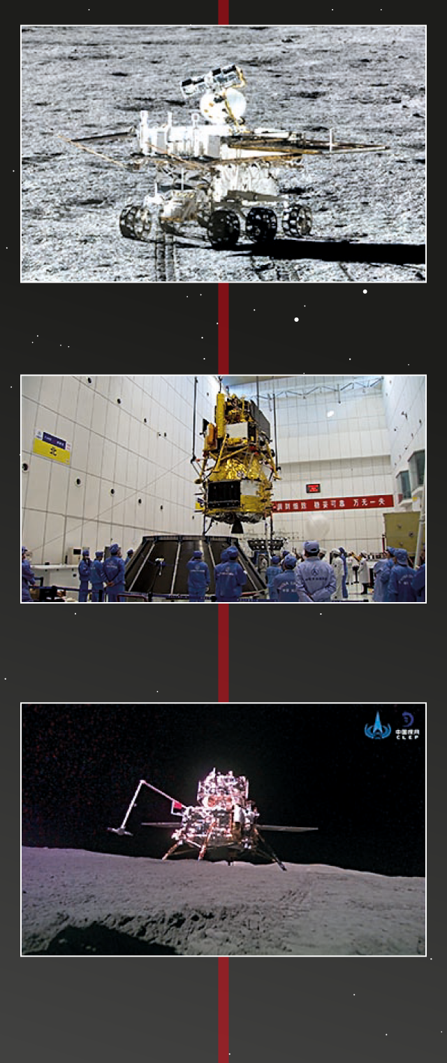Primer aterratge suau des del 1976 i primer ròver lunar xinès, Yutu, que té el rècord de període operatiu més llarg d’un ròver a la Lluna (fins al 2016)